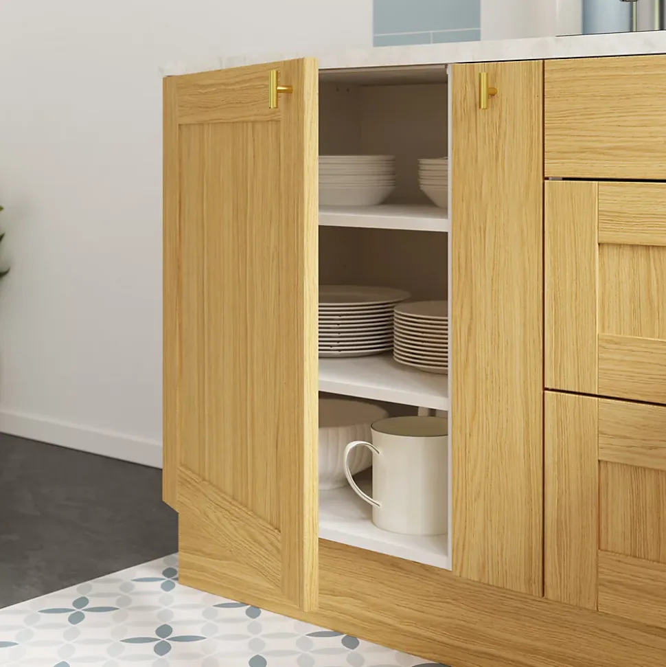 Notre gamme présente les dernières tendances en matière de styles, de couleurs et de finitions de porte. Le tout parfaitement coordonné avec notre gamme GoodHome pour la cuisine. Le style « Shaker » date du milieu du 18e siècle et évoque la simplicité, la fonctionnalité et la qualité. Fabriquée dans un bois de qualité, elle apportera caractère et chaleur à votre cuisine. La finition chêne naturel donne un style classique qui apporte une ambiance agréable.
