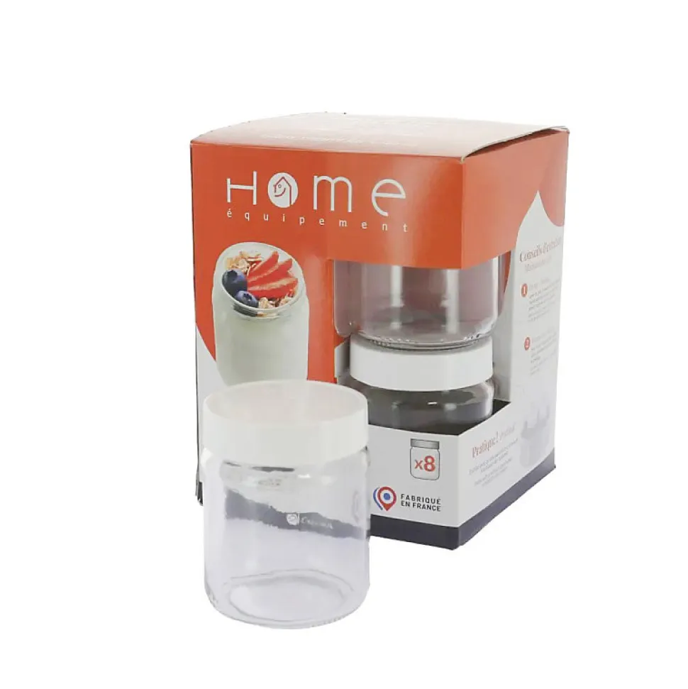 Pot de yaourt en verre avec couvercle a visser compatible pour yaourtières.Idéal pour vos préparations de yaourt fait maison.Lavable au lave-vaisselle.Dimensions standard 68x85mmContenance 150mlContenus 8 potsS’adapte aux yaourtières ayant des pots compatibles à la dimension 68x85mm.Compatible pour les marques et modèles suivants : Non CommuniquéRéférence commerciale de l’article : Non CommuniquéDésignation commerciale des modèles compatibles :Non Communiqué