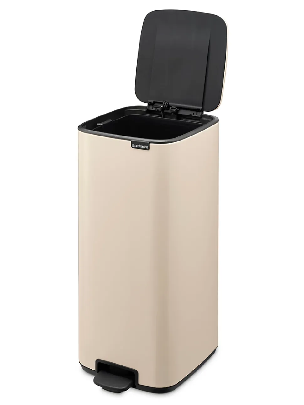 Vous voulez une grande poubelle avec un maximum de style ? La poubelle à pédale Brabantia 30 litres est belle à l’extérieur comme à l’intérieur. Peu encombrante, dotée d’un mécanisme à pédale hygiénique et d’un couvercle qui se ferme en douceur – rien n’est trop grand pour cette élégante poubelle. Besoin de la nettoyer ? Retirez le seau intérieur et portez la poubelle par sa poignée de transport. Elle possède même une fonction stay-open qui la maintient en position ouverte pour faciliter le nettoyage. Cette grande et belle aide-ménagère peut également se placer contre un mur. Choisissez Bo !