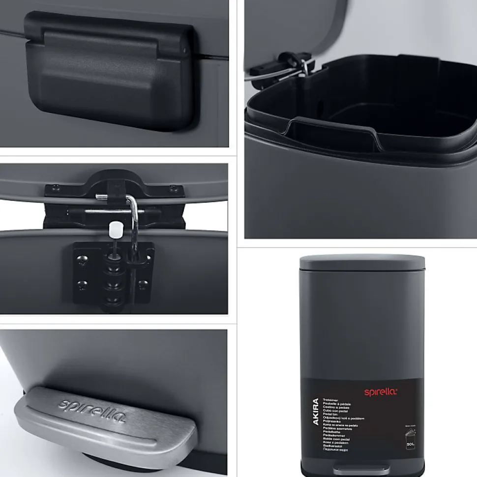 Poubelle Akira de la marque SPIRELLACouleur tendance, cette poubelle de 50L s’intègre parfaitement dans chaque pièce. L’insert en plastique avec poignée de transport pratique permet de vider et de nettoyer facilement le seau. La pédale permet d’ouvrir la poubelle sans effort. Confortable à ouvrir, vous n’avez pas besoin de vous baisser. La pédale de taille très grande assure une ouverture facile. Muni d’un socle en plastique de protection pour éviter des rayures au sol. La poubelle se fond dans dans n’importe qu’elle pièce de façon ultra moderne.Ainsi, Spirella associe design et ergonomie pour faire d’une poubelle un objet indispensable et confortable lors de son utilisation. Dimensions: 34,3×23,5×62,9cm Contenance: 30L Couleur: Noir Matière: Acier