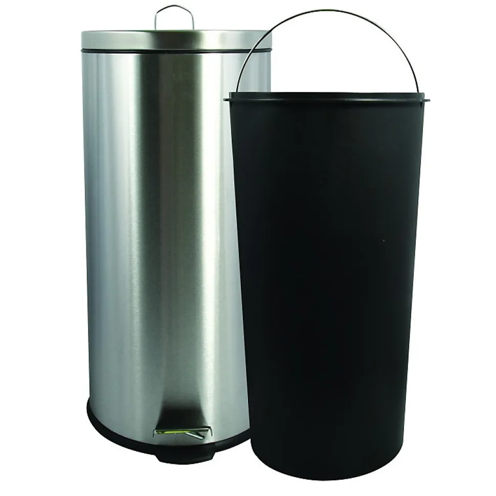 Poubelle de la marque MSV.Design moderne à la couleur tendance, la poubelle au volume de 30L s’intègre parfaitement à tous types de déco ! Stabilité élevée grâce à la forme ronde, son mécanisme à pédale antidérapante permet une ouverture facile en toute sécurité sans risque de glisser. Le couvercle s’ouvre immédiatement, sans que vous ayez besoin d’utiliser vos mains. Une poignée située au dos permet de déplacer facilement ou vous le souhaitez sans risque de vous blesser. Le seau intérieur amovible peut être retiré aisément pour être nettoyé. Confectionnée en acier Inoxydable, il est outre conforme aux normes hygiénique pour empêcher les bactéries et microbes de proliférer, mais il est d’autant plus insensible à la rouille, résistant à la corrosion et à différentes températures ce qui fait de lui une poubelle à utiliser dans toute la maison y compris les zones humides.Ainsi, la marque MSV apporte une solution associant hygiène et ergonomie pour faire d’une poubelle une satisfaction lors de son utilisation.Dimensions: 29,3×63,5cm Contenance: 30L Couleur: Acier Matière: Acier