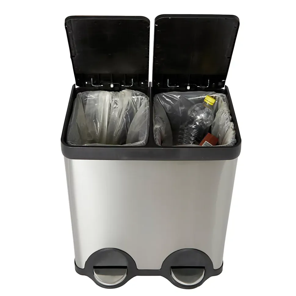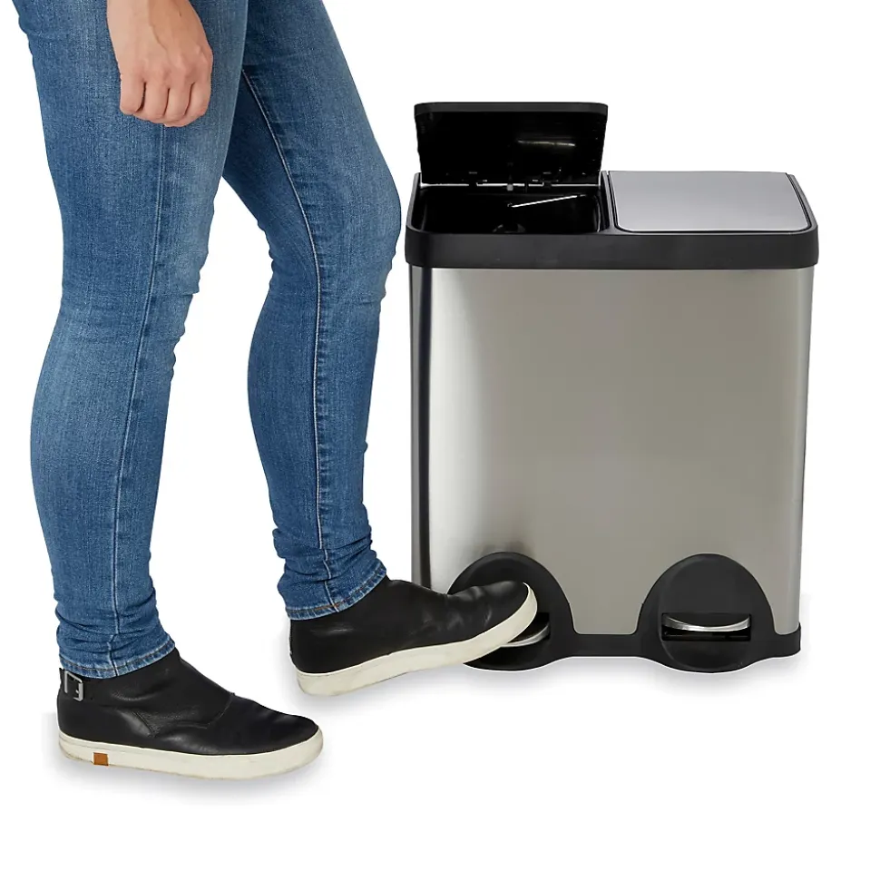 Avec son design rectangulaire, notre poubelle Beclan s’adosse parfaitement au mur ou à un meuble de cuisine. Elle est facile à déplacer grâce à sa poignée extérieure ; de plus, la poignée intérieure du bac permet de retirer plus facilement les déchets recyclables. Elle dispose également d’un revêtement anti-traces de doigts, d’un mécanisme de fermeture amortie et d’une ouverture à pédale. Vous n’avez donc pas à toucher le couvercle pour ouvrir et fermer la poubelle
