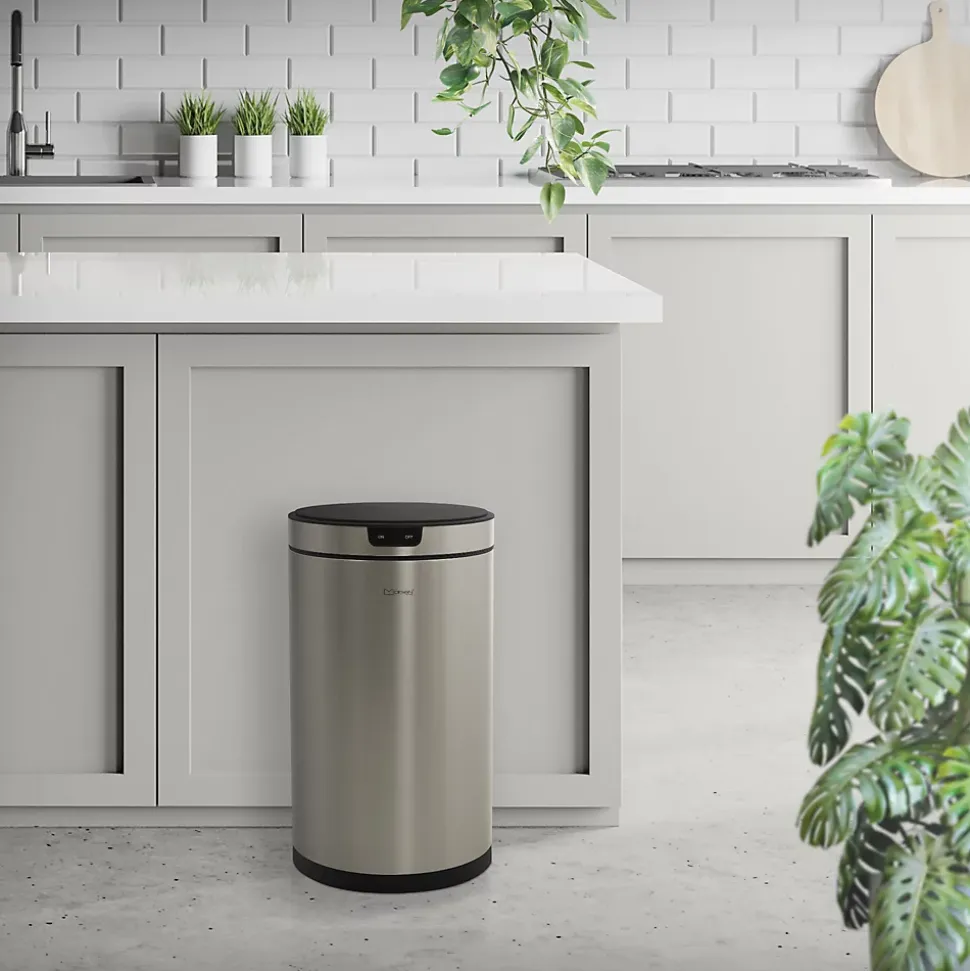 Poubelle avec capteur de mouvement – 30 litres en inox, moderne et hygiéniqueCette poubelle combine un design moderne avec un maximum de confort et d’hygiène. Grâce au capteur de mouvement intégré, le couvercle s’ouvre automatiquement dès qu’il détecte un mouvement – totalement sans contact et donc particulièrement hygiénique. Après un court compte à rebours de 5 secondes, le couvercle se referme doucement de lui-même.Le seau est en acier inoxydable de haute qualité avec une finition brillante au rouleau, tandis que le couvercle est en plastique ABS robuste. Le bouton ON/OFF permet de désactiver la fonction d’ouverture automatique si nécessaire. De plus, la poubelle à capteur dispose d’un mode maintien ouvert très pratique qui permet au couvercle de rester ouvert en permanence – idéal pour une utilisation prolongée, par exemple pour cuisiner.Avec son look élégant en acier inoxydable, la poubelle de 30 litres s’intègre parfaitement dans toute cuisine, bureau ou salle de bain moderne. AvantagesOuverture automatique: le capteur de mouvement détecte les mouvements et ouvre automatiquement le couvercle.Fermeture automatique: le couvercle se ferme automatiquement après un compte à rebours de 5 secondes. Livraison1x Poubelle avec capteur de mouvement (30 litres)(piles non incluses) Information techniqueMatériaux:Corps: acier inoxydable avec peinture au rouleauCouvercle: plastique ABSCouleur: Argent (gris)Finition: Brillant / aspect inoxVolume: 30 litresMode de fonctionnement: sur piles (4 piles AA, non fournies)Fonctions:Capteur de mouvement (ouverture automatique)Fermeture automatique après 5 secondesIndicateur de niveau de batterieMode maintenir ouvertBouton ON/OFFDimensions:Total: Ø 29 × H 52 cmDimensions intérieures: Ø 27,5 × H 47 cm