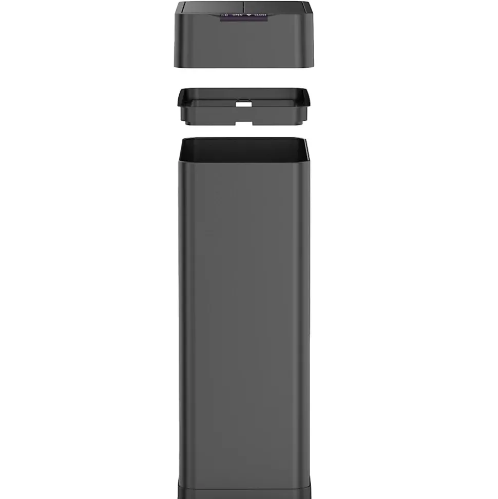 La poubelle automatique SILVERLAKE 90L noir mat de Kitchen Move associe style moderne, grande capacité et confort d’utilisation. Son système d’ouverture papillon automatique facilite le dépôt des déchets sans effort, tout en économisant de l’espace sous les plans de travail. Son corps en acier inoxydable noir mat et son couvercle en ABS assorti s’intègrent avec élégance dans les cuisines design ou les bureaux contemporains. Le capteur infrarouge détecte vos mouvements à environ 15 cm pour une ouverture sans contact. Elle fonctionne avec 4 piles AA (non incluses) ou via port DC USB (câble fourni). Le cerclage intérieur maintient le sac solidement, la base antidérapante assure une bonne stabilité, et la fermeture silencieuse rend son usage agréable au quotidien. Facile à nettoyer grâce à sa surface anti-traces, cette poubelle allie hygiène, confort et esthétisme. Dimensions : 42,4 × 26,9 × 84 cm.