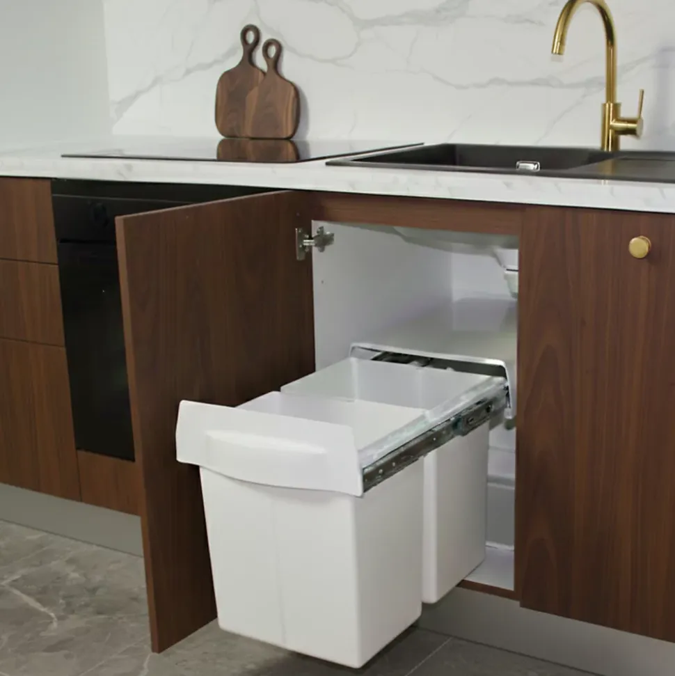 • Poubelle double compartiment • • Poubelle manuelle • • Poubelle fermeture silencieuse • • Meuble sous évier 40 cm min