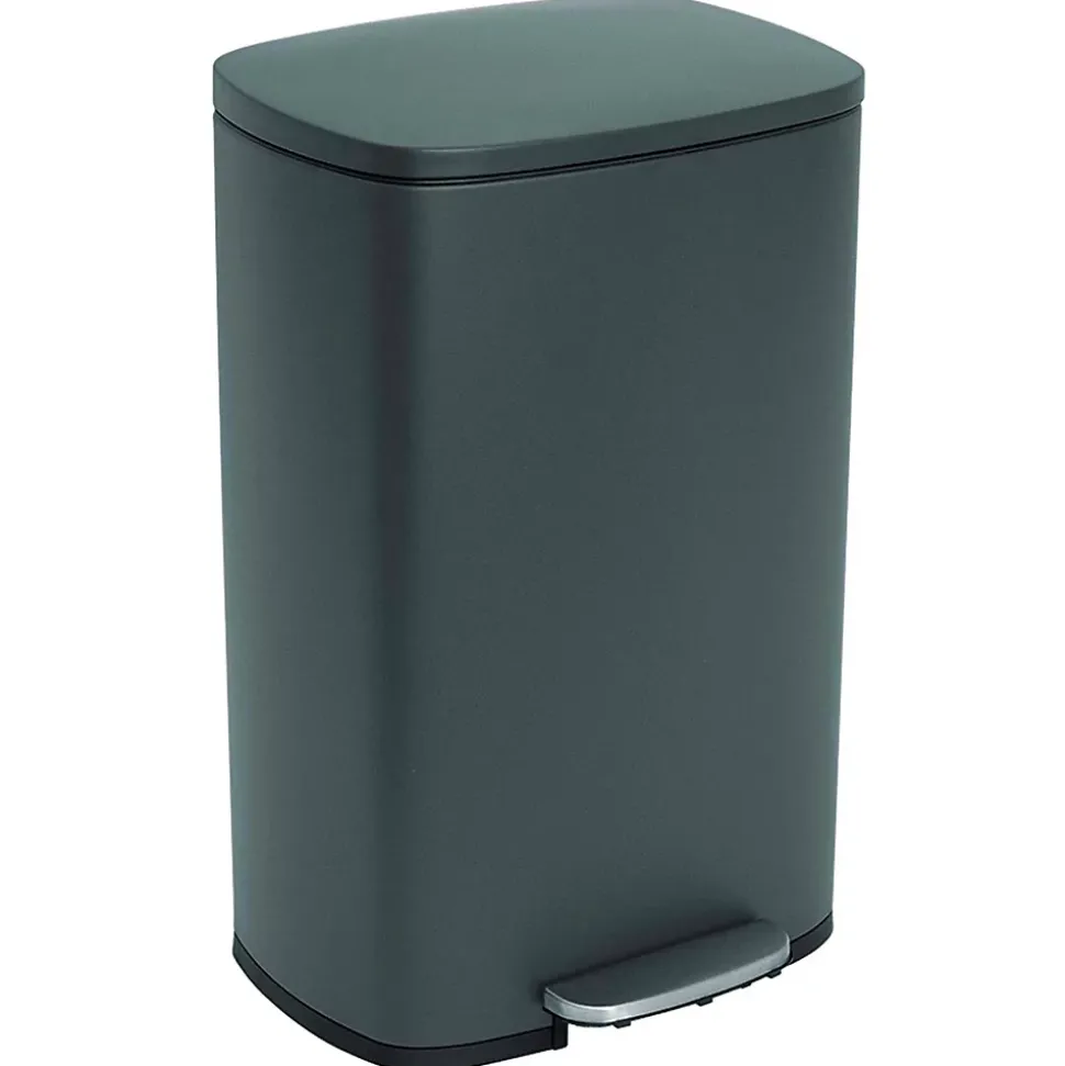 - Poubelle de cuisine à pédale rectangulaire avec seau capacité 50 L avec pédale au pied manuelle modèle Admiral en acier inoxydable finition gris mat. Dimensions: 43 x 37 x 66 cm. Poids : 5,1 kg.