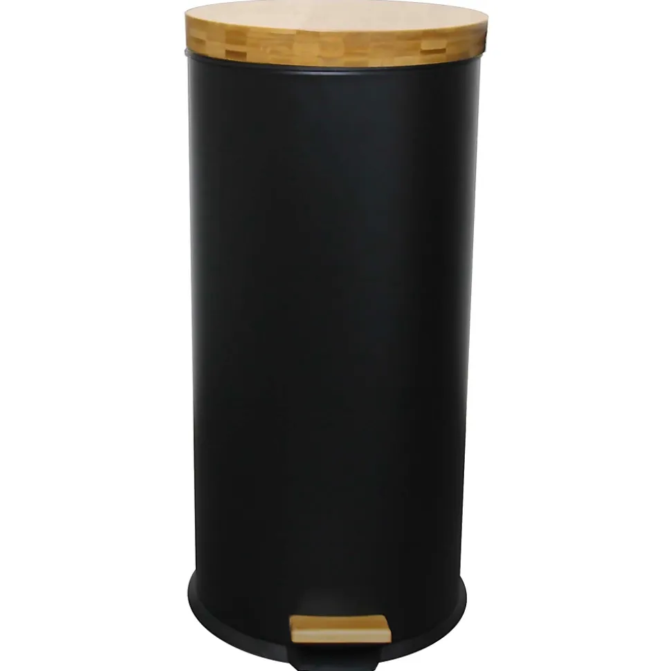 - Poubelle de cuisine à pédale ronde avec seau capacité 30 L modèle Forest en acier inoxydable couleur blanc. Dimensions: Ø 30 x 63 cm. Poids : 3,15 kg. Corps en acier inox (0,4 mm) et couvercle en bois. Nouveau modèle