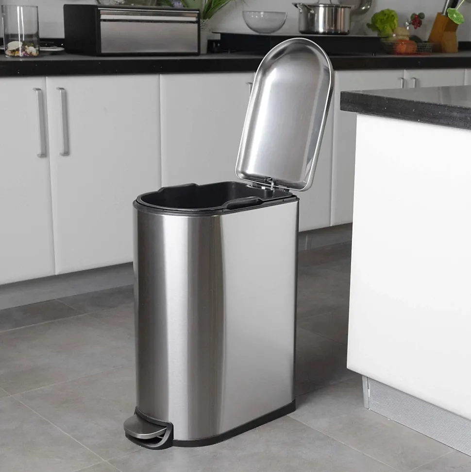- Poubelle cuisine étroite à pédale au pied manuelle. Matériaux robustes. Mécanisme de pédale solide. Très simple d’utilisation. Fermeture insonore et anti-odeurs. Silencieuse grâce à son système d’amortisseur et de fermeture ralentie. Ouverture facile grâce à sa large pédale. Qualité professionnelle. finition haut de gamme. Facile à déplacer grâce à une poignée de transport solide. Facile à nettoyer grâce au seau intérieur en plastique