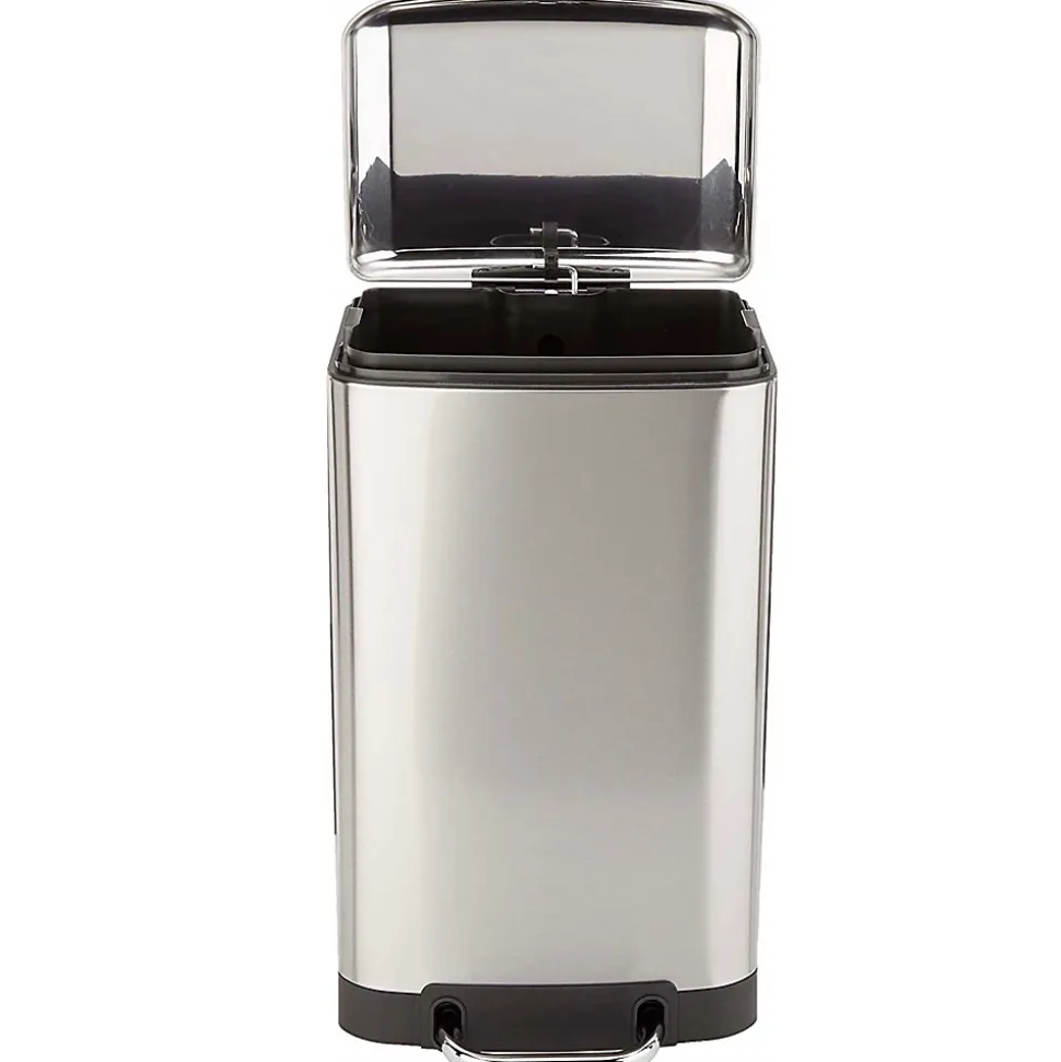 - Poubelle de cuisine à pédale rectangulaire avec seau capacité 30 L modèle Greenwich en acier inoxydable finition inox brossé. Dimensions : 35 x 33 x 62 cm. Poids : 3,8 kg