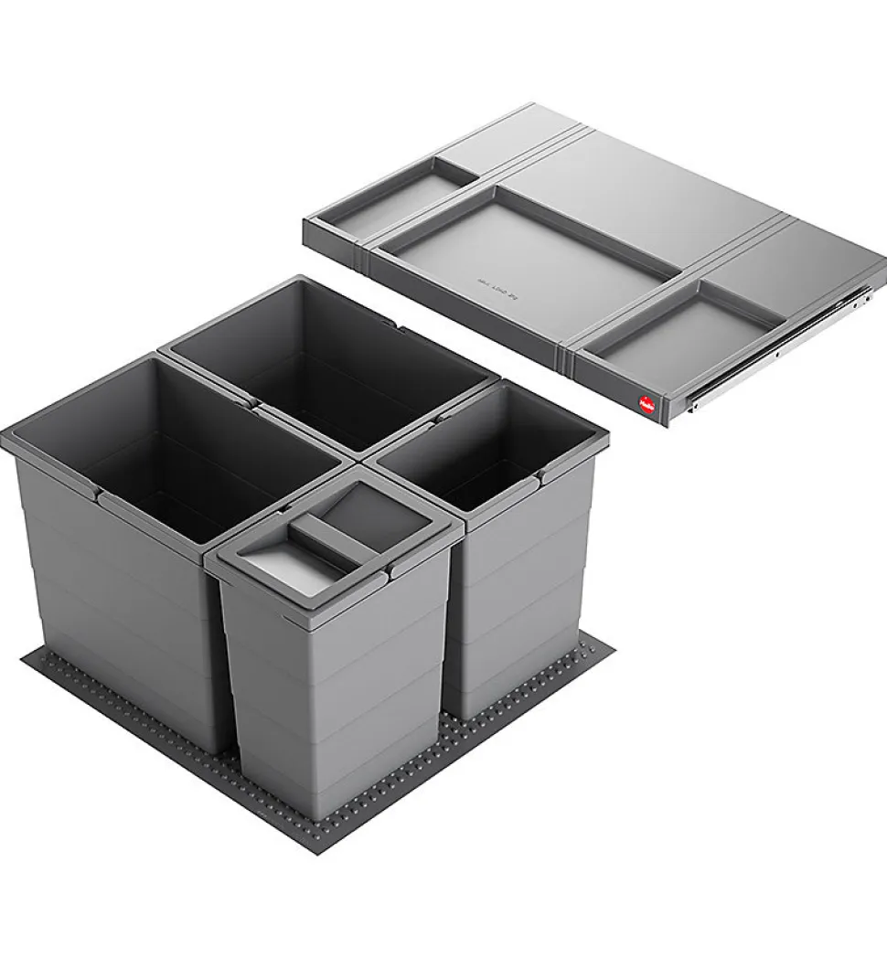 Poubelle de cuisine encastrable Hailo AS Allegro S295 2x18L + 2x8L – Gris anthracite – 2 bacs amovibles de 18L et 2 bacs amovibles de 8L – Couvercle amovible avec rangements supérieurs – Tapis antidérapant et stabilisant pour les bacs – Nettoyage facile – Conçue pour meubles coulissants avec tiroir d&