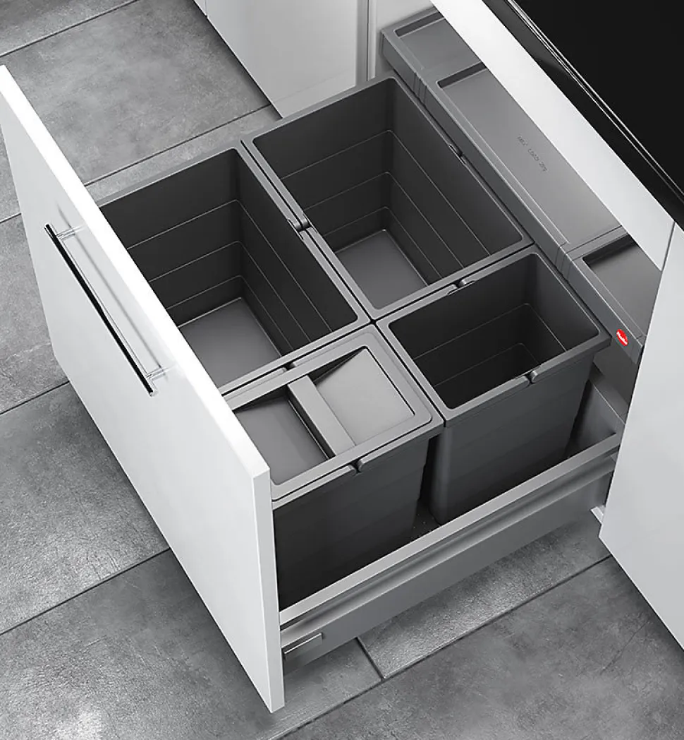La poubelle de cuisine encastrable AS Allegro S295 2x18L + 2x8L Hailo La poubelle encastrable Hailo AS Allegro S295 est conçue pour les meubles de cuisine de 60 cm de largeur et offre une solution hautement fonctionnelle pour le tri sélectif. Avec deux bacs de 18 litres et deux bacs de 8 litres, elle propose une grande capacité tout en restant discrète. Le système s’intègre directement dans un tiroir existant et utilise les glissières du meuble pour une ouverture fluide et un accès total. Les bacs reposent sur un tapis antidérapant, sans besoin de fixation, pour une installation simple et stable. Robuste, modulable et facile à entretenir, cette poubelle encastrable signée Hailo combine volume, organisation et qualité allemande. Avantages et points forts de la poubelle encastrable AS Allegro S295 2x18L + 2x8L oe?Tapis antidérapant oe?Design épuré oe?Personnalisation selon vos besoins Schémas d’intégration de la poubelle encastrable AS Allegro S295 2x18L + 2x8L Hailo Choisir sa poubelle de cuisineUne décoration métal et inox dans votre cuisine5 étapes simples pour choisir sa poubelle encastrableComment organiser son emménagement ?Hailo en vidéoHailo dans les médiasTrouvez la poubelle design idéaleLe tri sélectif, comment s’en sortir ?Optimiser son organisation avec HailoChoisir sa poubelle encastrable Previous Next