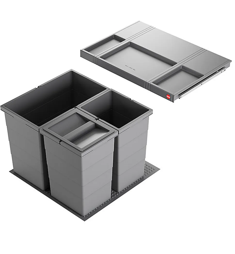 Poubelle de cuisine encastrable Hailo AS Allegro S350 28L + 2x13L – Gris anthracite – 1 bac de 28L et 2 bacs de 13L amovibles – Couvercle amovible avec rangements supérieurs – Tapis antidérapant et stabilisant pour les bacs – Nettoyage facile – Conçue pour meubles coulissants avec tiroir d&