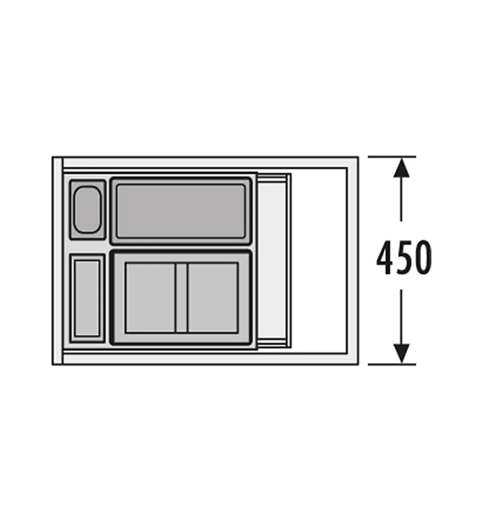 Poubelle de cuisine encastrable Hailo AS XXL 450 30L La poubelle encastrable Hailo AS XXL 450 30L facilite votre vie et vous permet de gagner de la place dans votre cuisine tout en atténuant les odeurs. Profitez d’un bac de 18L, d’un bac de 12L et d’un bac de 4L dont un avec couvercle pour un tri sélectif plus facile et rapide. Des rangements sont disposés sur le devant de la poubelle pour optimiser au maximum l’espace disponible dans votre cuisine. Cette poubelle s’intègre dans des meubles coulissants avec tiroir d’une largeur de 45 cm. Avantages et points forts de la poubelle encastrable AS XXL 450 30L oe? Facile à nettoyer et à vider car les 3 bacs intérieurs de 1 x 18L + 1 x 12L + 1 x 4L sont amovibles. oe? Le couvercle fixe empêche la propagation des odeurs. oe? Gain de place dans votre cuisine. oe? Encastrable, la poubelle Hailo AS XXL 450 30L se cache à l’intérieur de votre meuble. oe? Deux rangements sur le devant pour une organisation de votre cuisine optimale. oe? Facile à installer grâce à la notice de montage pratique. oe? Tri sélectif plus facile grâce aux trois bacs permettant une séparation des déchets simple et rapide. oe? Sacs poubelles universels Hailo parfaitement adaptés à la forme rectangulaire du bac de 18L. oe? Intégrée dans un meuble avec tiroir, la poubelle suit l’ouverture de la porte et permet un dépôt des déchets rapide et simple. Schémas d’intégration de la poubelle encastrable AS XXL 450 30L Choisir sa poubelle de cuisineUne décoration métal et inox dans votre cuisine5 étapes simples pour choisir sa poubelle encastrableComment organiser son emménagement ?Hailo en vidéoHailo dans les médiasTrouvez la poubelle design idéaleLe tri sélectif, comment s’en sortir ?Optimiser son organisation avec HailoChoisir sa poubelle encastrable Previous Next