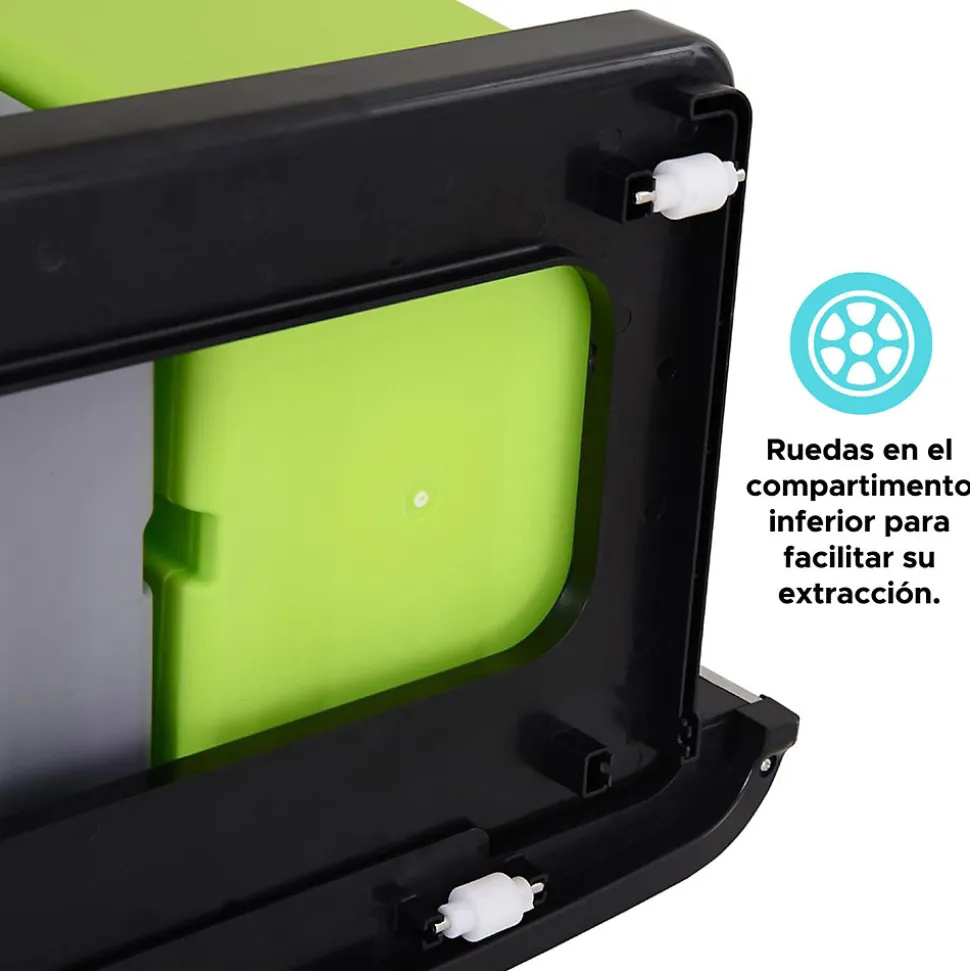 Poubelle de recyclage en acier inoxydable de 62 L.EFFICACE ET ORGANISÉE : Dotée de deux compartiments séparés, cette poubelle offre un volume total de 62 L, divisé en 37 L pour le compartiment supérieur et 25 L pour le compartiment inférieur (ce dernier pouvant accueillir un ou deux contenants). Le compartiment inférieur est équipé de roulettes. Ce dernier est équipé de deux bacs amovibles de 12,5 L.ROBUSTE ET ÉLÉGANTE : Son corps en acier inoxydable résistant aux traces de doigts allie robustesse et modernité. Sa forme rectangulaire lui confère une apparence élégante et s’intègre harmonieusement dans toutes les cuisines.OUVERTURE AUTOMATIQUE ET MANUELLE : Le compartiment supérieur peut s’ouvrir automatiquement ou manuellement. Le compartiment inférieur peut également s’ouvrir manuellement pour une gestion des déchets adaptée à vos besoins.PRATIQUE ET ACCESSOIRES : La fermeture silencieuse du couvercle assure un environnement de cuisine silencieux et une utilisation simplifiée. Un anneau en ABS assure un meilleur maintien des sacs.Dimensions : 42 x 31,5 x 74,5 cm – Fonctionne avec 6 piles AA (non fournies).