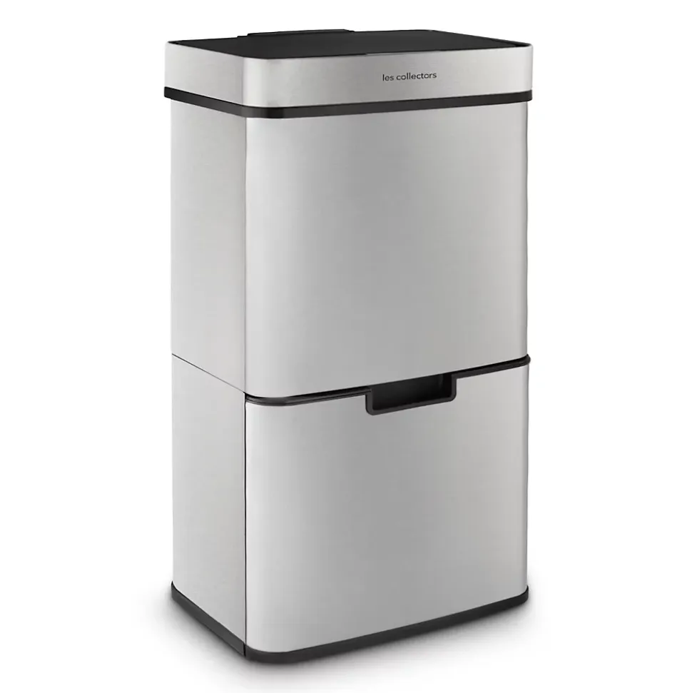 CAPACITÉ ET DIMENSIONS : Cette poubelle de tri à capteur offre une capacité totale de 64 L, répartie en un compartiment principal de 42 L et deux compartiments inférieurs de 11 L chacun. Elle mesure 42 x 31,5 x 78,5 cm, idéale pour une utilisation fonctionnelle et compacte.MATÉRIAUX ET TECHNOLOGIE : Conçue en acier inoxydable avec une finition anti-traces de doigts, elle est durable et facile à entretenir. L’ouverture supérieure automatique fonctionne grâce à un système de détection infrarouge, tandis que les compartiments inférieurs s’ouvrent manuellement.PRATICITÉ ET CONFORT : Équipée d’un couvercle à fermeture silencieuse, elle fonctionne avec 6 piles rechargeables AA (non incluses) et inclut une poubelle à déchets verts de 3 L. Idéale pour un tri des déchets hygiénique et moderne.