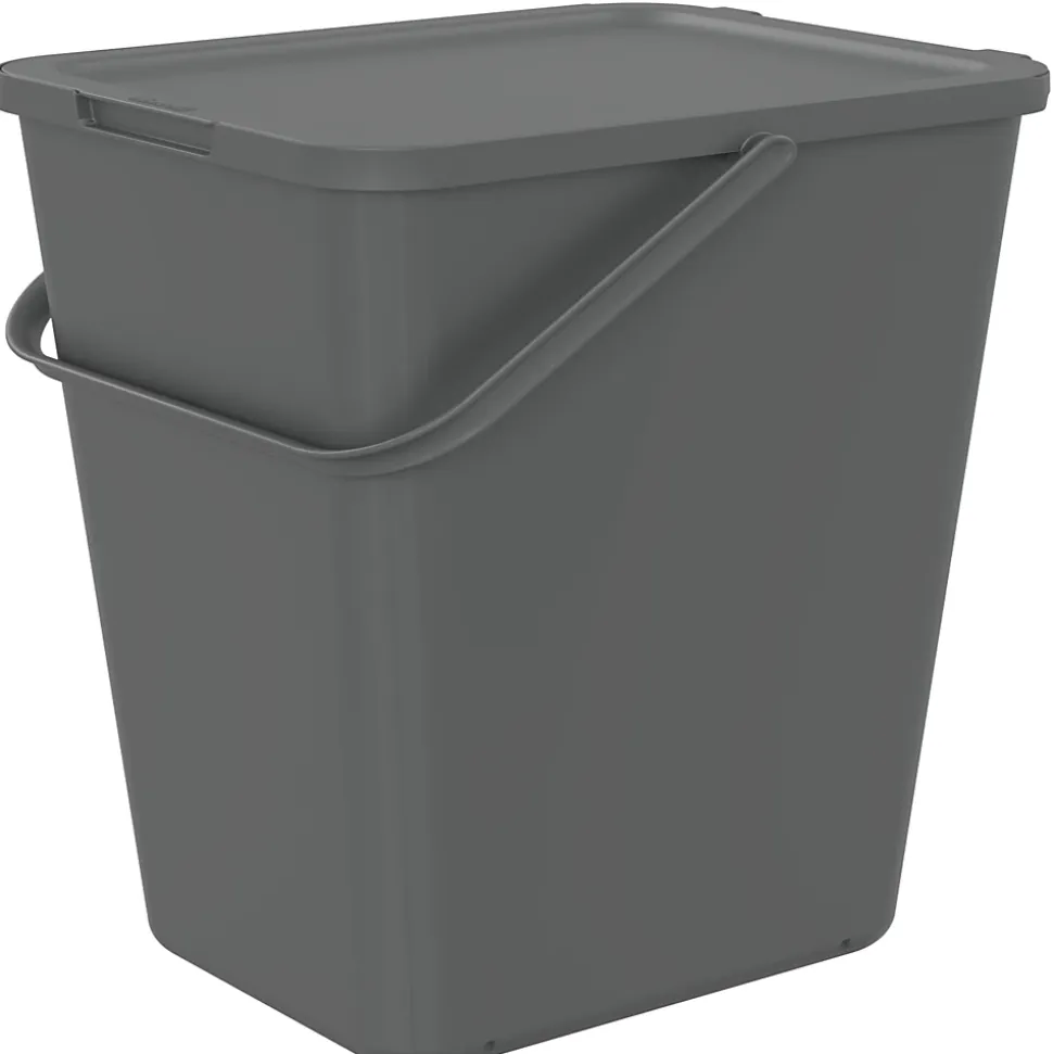 Conteneur d’intérieur pour tri sélectif de couleur gris et d’une capacité de 30 L. Le couvercle s’ouvre entièrement pour vider le bac. Equipé d’une anse pour faciliter le transport.