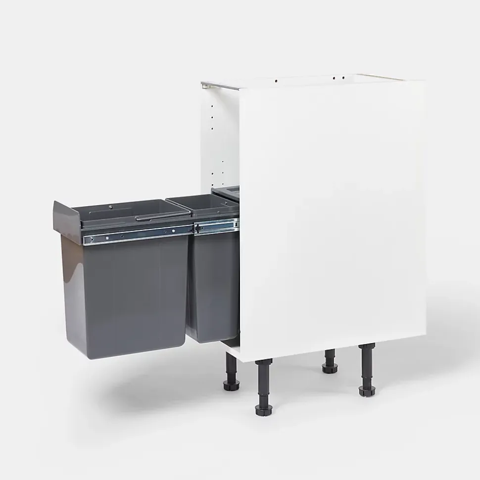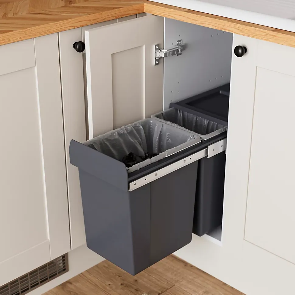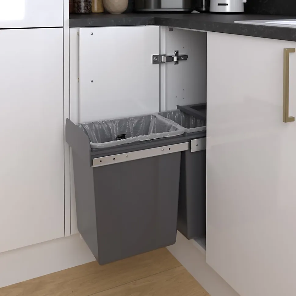 - Cette poubelle à glissière solide et de haute qualité est fixée à la base de l’unité pour plus de flexibilité et dissimule les déchets derrière votre meuble de cuisine