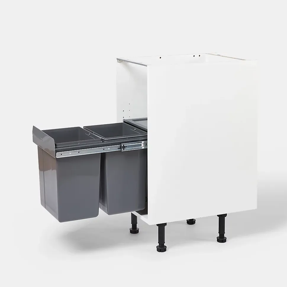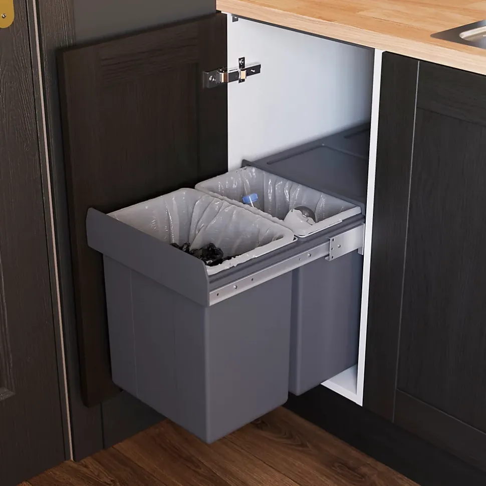 - Cette poubelle à glissière solide et de haute qualité est fixée à la base de l’unité pour plus de flexibilité et dissimule les déchets derrière votre meuble de cuisine