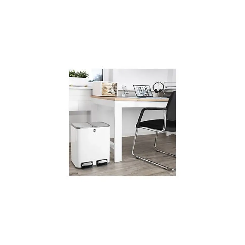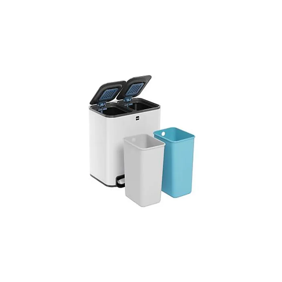 Poubelle de tri sélectif à pédale « the classy », 2 x 12 litresPour une pièce sans odeurs de déchets !• en inox & ABS• avec filtre à charbon actif interchangeable dans le couvercle (incl.)• avec 2 récipients pour un tri efficace des déchets• mécanisme Soft-Close• avec pédale• bacs amovibles pour le vidage et le nettoyage• dimensions : (L) 51,5 x (P) 25,5 x (H) 61,5 cm Exemples d’utilisation :- convient pour différentes pièces, comme les bureaux, les cuisines et les salles de bain