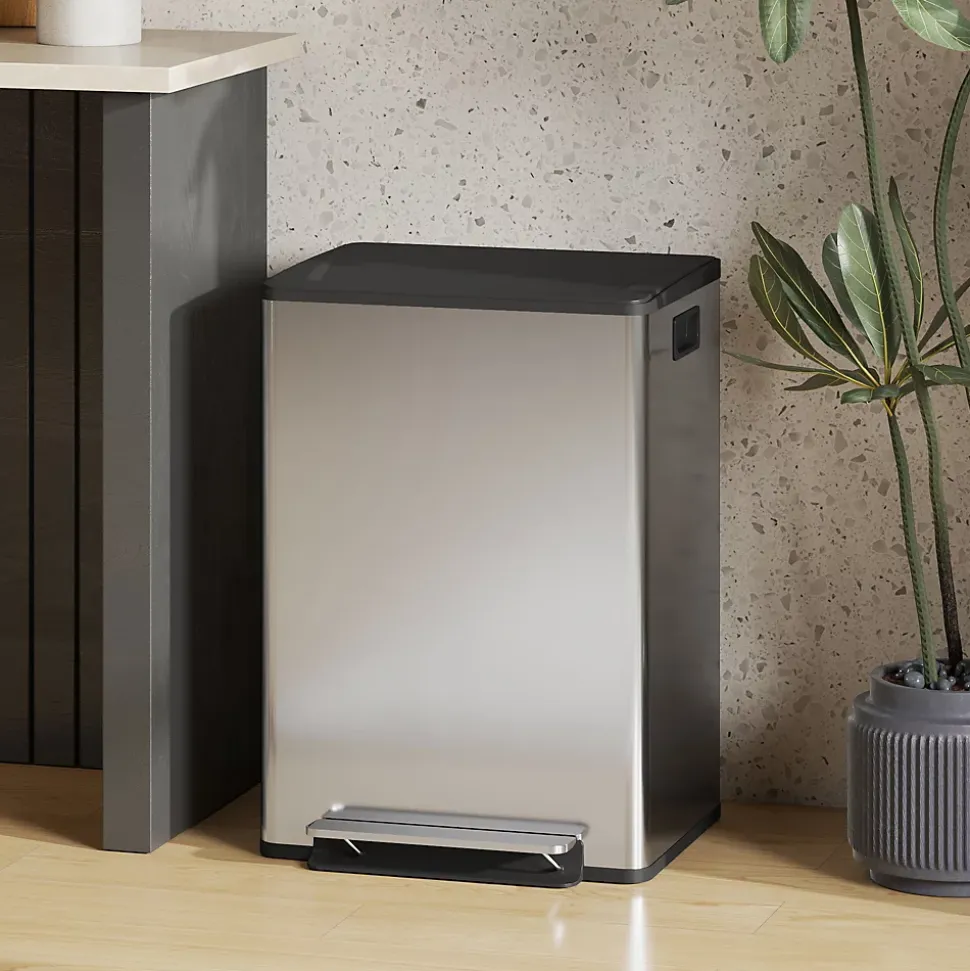 Fatigué du désordre dans votre cuisine ? Notre poubelle HOMCOM avec pédales offre deux compartiments pour un tri facile et un couvercle qui reste ouvert. Le corps en acier inoxydable brossé évite les traces, améliorant le style de la cuisine et apportant calme à votre quotidien.Caractéristiques :- Les deux compartiments de 30L de la poubelle facilitent grandement le tri et la séparation des déchets- La poubelle avec couvercle reste ouvert à 90° et se ferme doucement pour une opération silencieuse- La pédale à pied sans contact offre un moyen hygiénique d’ouvrir le couvercle- Finition en acier inoxydable anti-traces résistant aux marques, le gardant propre et comme neuf- Les seaux intérieurs amovibles permettent une élimination facile des déchets et un nettoyage approfondi- Cette poubelle rectangulaire comprend un filtre anti-odeurs intégré pour garder votre cuisine fraîche- Aucun montage nécessaire, utilisation immédiate possible !Spécifications :- Couleur : acier inox- Material: acier inox, ABS, PP- Dimensions totales : 47,5L x 37,5l x 67H cm- Dimensions du seau intérieur : 27L x 20l x 63H cm- Capacité : 60 l (2 x 30 l)- Hauteur max. ouverte : 98 cm- Réf. : 851-067V00SR