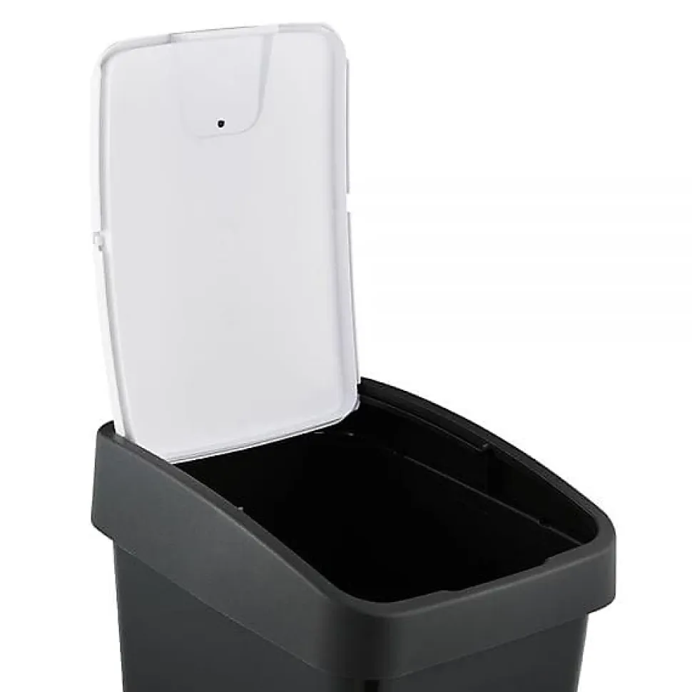 Poubelle plastique rectangulaire, à couvercle oscillant ou à soulever, de capacité 45 litres de la gamme Magne de la marque Allemande Keeeper. Son couvercle des plus pratiques présente deux fonctions, on peut le soulever ou le faire osciller et il est amovible pour mettre ou enlever facilement le sac poubelle.Le couvercle au design élégant présente un système d’ouverture agréable Soft Touch. deux possibilités d’ouverture : à bascule vers le haut ou le bas système confortable Soft-Touch-Point matériau : polypropylène recyclable solide design à 2 couleurs nettoyage facile : nettoyer avec un chiffon ou une éponge humide dimensions : 30 x 40 x (H)61,5 cm sac poubelle adapté : 60 litres de capacité