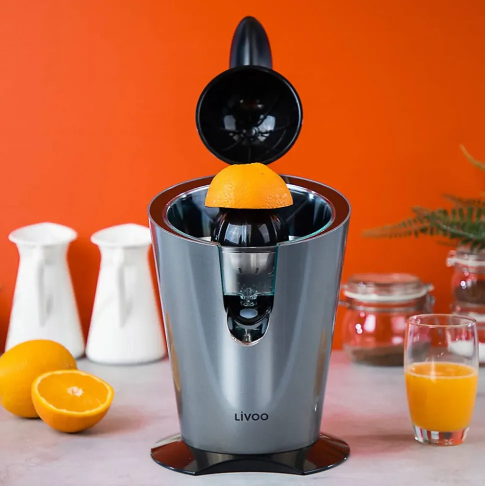 Presse-agrumes 160w inox Livoo – Presse-agrumes électrique Livoo DOD164 doté d’un moteur silencieux et puissant avec rotation lente pour une meilleure extraction du jus. Extraction facile grâce à son bras levier. Récupérateur de jus 0,370 L ou verseur dépliable pour se servir directement. 2 cônes pour s’adapter aux différents agrumes. – Type de produit : Presse-agrumes.Couleur : Inox.Capacité réservoir (L) : 0.37.Nombre de cônes : 2.Système anti-gouttes : Oui.Écoulement direct : Oui.Base anti-dérapante : Oui.Démarrage automatique : Oui.Puissance (W) : 160.Dimensions nettes (L x H x P cm) : 26 x 19 x 31.Poids net (Kg) : 2.4.