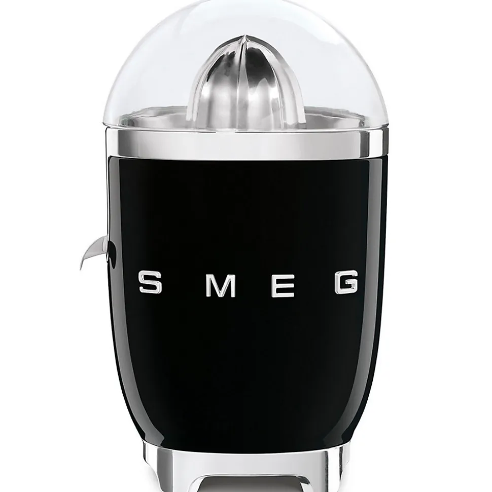 Presse-agrumes 70w noir Smeg – Presse-agrumes Années 50 Smeg CJF11BLEU. La gamme Années 50 se caractérise par un incomparable look rétro et vintage avec une forme bombée et compacte. Pensée pour ceux qui souhaitent vivre une expérience de chef, mais pas seulement… aussi pour ceux qui aiment s’entourer d’objets au fort caractère esthétique sans renoncer à la qualité des résultats. Un presse-agrumes design et efficace ! Cône universel pour un pressage facile de tous les agrumes : citrons, oranges, pamplemousses, etc … – Type de produit : Presse-agrumes.Gamme : Années 50.Puissance (W) : 70.Matière de l’appareil : Plastique.Système de pressage : Avec mise en marche automatique.Double sens de rotation : Non.Couleur : Noir.Finition : brillant.Rangement du cordon : Intégré.Autre(s) : Bec verseur anti-goutte inox.Autre(s) accessoire(s) inclus : Cône universel, Couvercle Tritan Renew.Sécurité(s) : Base antidérapante.Longueur du cordon (m) : 1.Tension (V) 220-240 V.Fréquence (Hz) 50/60 Hz.Largeur du produit : 16.5 cm.Profondeur du produit : 18.9 cm.Hauteur du produit : 28.1cm.Poids (kg) : 2.56.