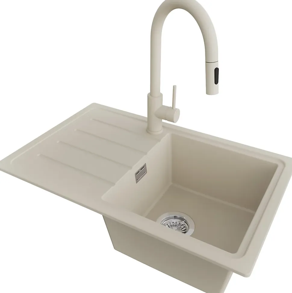 - ✅ Le kit comprend – Évier Copenhague 700-45 Easy, robinet de cuisine Primagran 9010 beige avec Bec extractible et 2 types de jet, kit complet de vidange (siphon haute qualité, trop-plein, raccordement supplémentaire pour lave-linge ou lave-vaisselle), flexibles de raccordement 3/8” de 400 mm, double joints d’étanchéité.