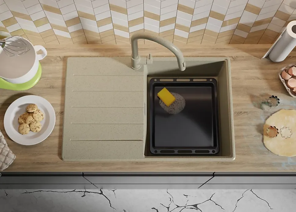 - ✅ La CUVE XL aux dimensions impressionnantes de 390x460x200 mm peut accueillir une grande quantité de vaisselle, y compris celles aux dimensions non standard. Vous pourrez même y placer sans problème une plaque à pâtisserie. Les contours fins assurent un design de l’évier qui s’intègre parfaitement à tous les intérieurs. Grâce à eux, vous pourrez facilement vous débarrasser des petites miettes et salissures en les dirigeant directement vers la cuve à l’aide d’un chiffon.