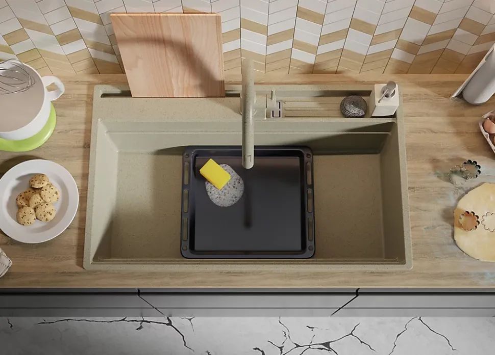 - ✅ La CUVE XXL avec des dimensions de 840×400 mm est idéale pour une grande quantité de vaisselle. Vous pourrez y laver sans problème une plaque à pâtisserie et de nombreux autres ustensiles et moules non standard. Sa profondeur de 200 mm permet d’utiliser l’évier confortablement sans éclaboussures d’eau en dehors de la cuve. La taille de la cuve sera également utile pour laver, par exemple, des étagères du réfrigérateur.
