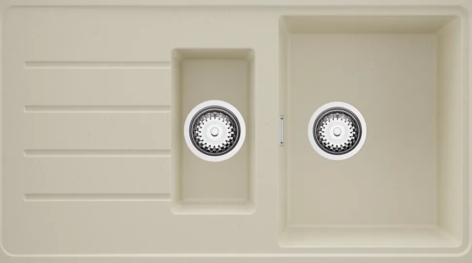 - ✅ Le kit comprend – Évier Copenhague 900-60 Duo, kit complet de vidange (siphon haute qualité, trop-plein, raccordement supplémentaire pour lave-linge ou lave-vaisselle).