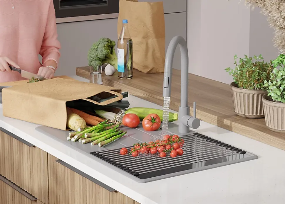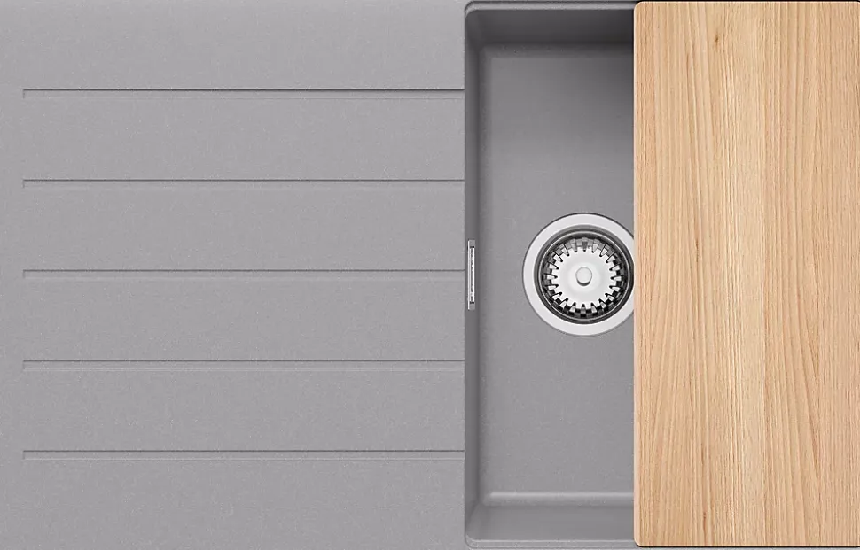PRIMAGRAN Evier Cuisine en Granit Gris 78x50cm, Lavabo 1 bac + Kit de Vidage + Accessoires, Évier à Encastrer au meuble 45cm