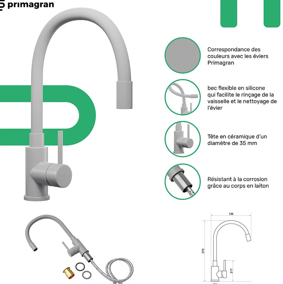 - ✅ Le kit comprend – Évier Copenhague 900-60 Duo, robinet de cuisine flexible Primagran 6030 gris avec Bec extractible, kit complet de vidange (siphon haute qualité, trop-plein, raccordement supplémentaire pour lave-linge ou lave-vaisselle), flexibles de raccordement 3/8” de 400 mm, double joints d’étanchéité.