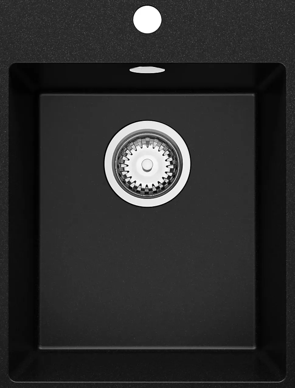 PRIMAGRAN Evier Cuisine en Granit Noir 38x50cm, Lavabo 1 bac + Kit de Vidage, Évier à Encastrer au meuble 40cm – Riga