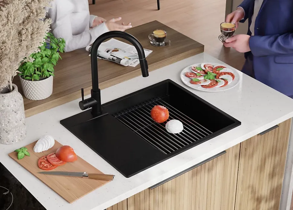 - ✅ STATION DE TRAVAIL MULTIFONCTIONNELLE – l’évier dispose d’un rebord spécial sur lequel vous pouvez placer des accessoires dédiés tels qu’un égouttoir enroulable ou un bac d’égouttage. Vous pouvez simultanément laver et sécher les produits. L’égouttoir compact et minimaliste est idéal pour sécher même des ustensiles non standard. Il sera un endroit pratique pour les déposer avant le lavage, ce qui permettra de maintenir l’ordre autour de l’évier.