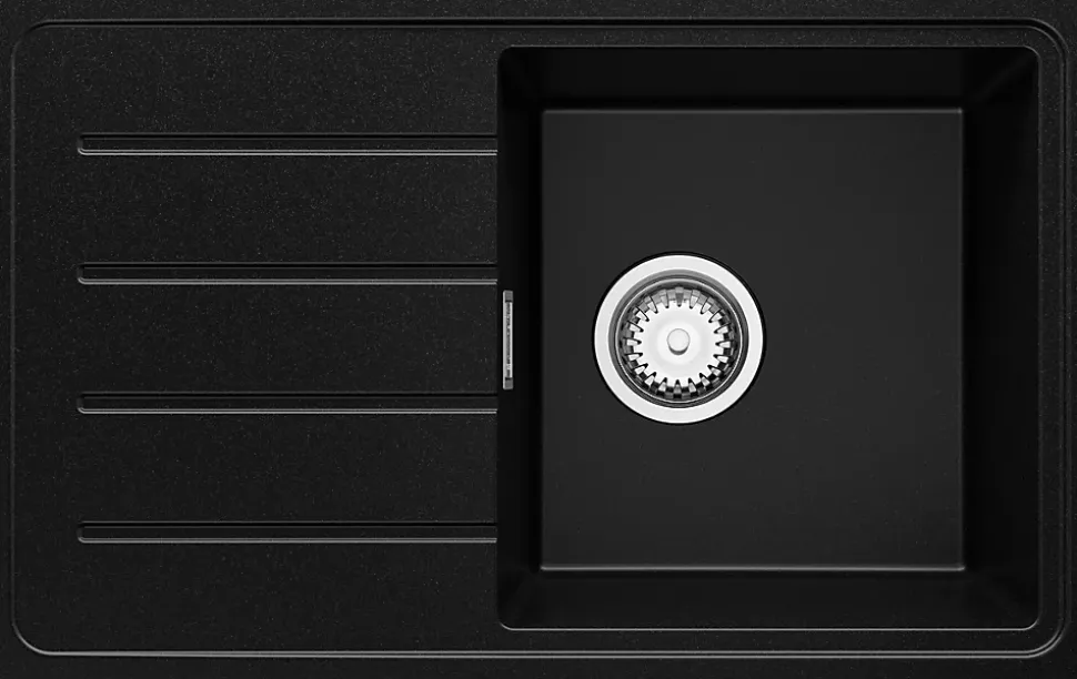 PRIMAGRAN Evier Cuisine en Granit Noir 70x44cm, Lavabo 1 bac + Kit de Vidage, Évier à Encastrer au meuble 45cm – Copenhague Easy