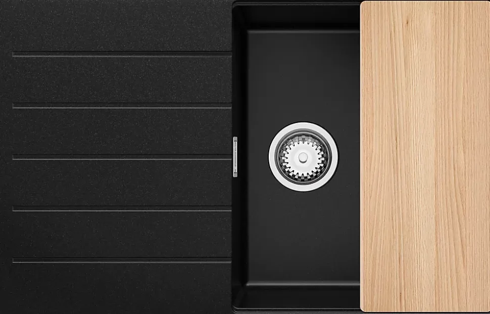 - ✅ Le kit comprend – Évier Copenhague 780-50 Top, kit complet de vidange (siphon haute qualité, trop-plein, raccordement supplémentaire pour lave-linge ou lave-vaisselle), planche à découper.