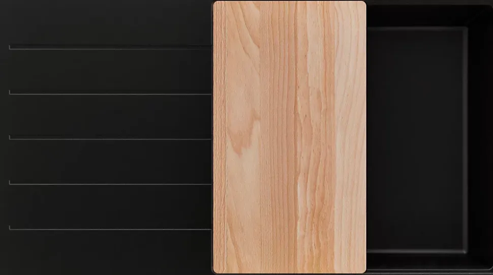 - ✅ Le kit comprend – Évier Copenhague 900-60 Top, kit complet de vidange (siphon haute qualité, trop-plein, raccordement supplémentaire pour lave-linge ou lave-vaisselle), planche à découper.