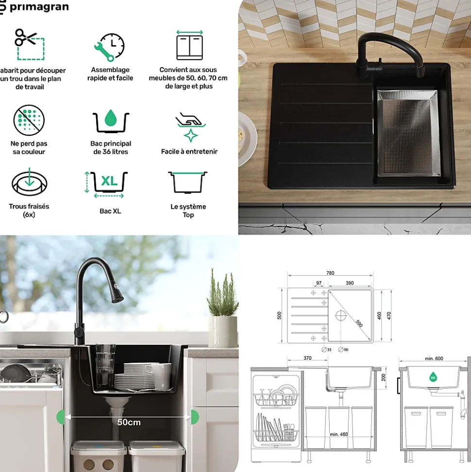 - ✅ RÉSISTANCE ET DURABILITÉ – L’Évier encastrable Copenhague 780-50 Top, de dimensions 780x500x200 mm, s’adapte parfaitement aux meubles de cuisine d’une largeur à partir de 50 cm. L’Évier est rapide et facile à installer, offrant ainsi confort et gain de temps. Grâce à l’utilisation de technologies modernes, l’Évier se distingue par une résistance exceptionnelle aux rayures, Résistance à la décoloration, chocs et Résistance aux chocs thermiques.