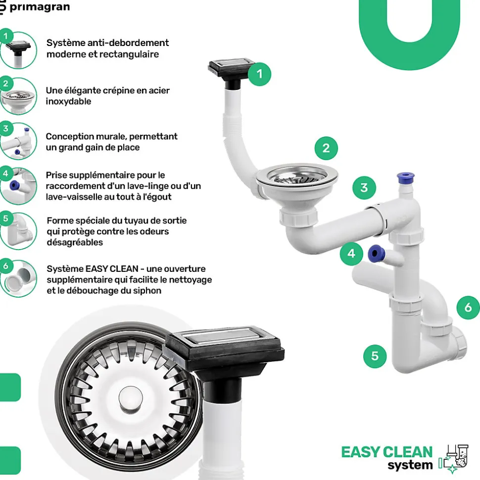 - ✅ Le kit comprend – Évier Oslo 80 Pocket Multilevel (Right), kit complet de vidange (siphon haute qualité, trop-plein, raccordement supplémentaire pour lave-linge ou lave-vaisselle), égouttoir enroulable, planche à découper.