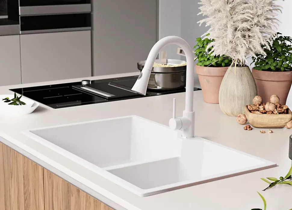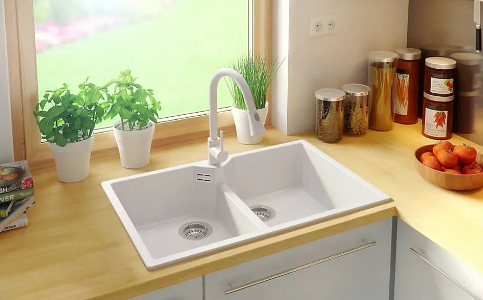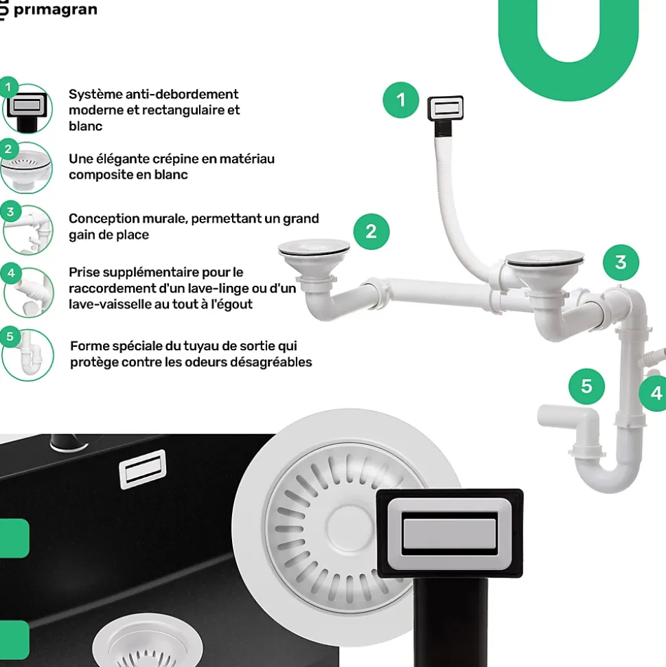 - ✅ Le kit comprend – Évier Madrid 80 Twin, kit complet de vidange (siphon haute qualité, trop-plein, raccordement supplémentaire pour lave-linge ou lave-vaisselle).