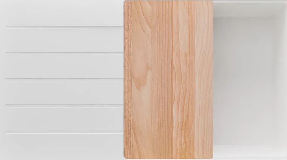 - ✅ Le kit comprend – Évier Copenhague 900-60 Top, kit complet de vidange (siphon haute qualité, trop-plein, raccordement supplémentaire pour lave-linge ou lave-vaisselle), planche à découper.