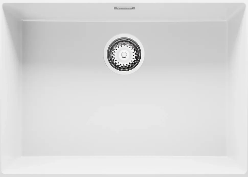 PRIMAGRAN Evier Sous Plan Blanc 66x47cm, Evier en Granit 1 bac + Kit de Vidage, Évier au meuble 70cm – London