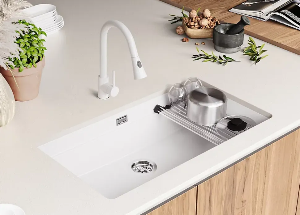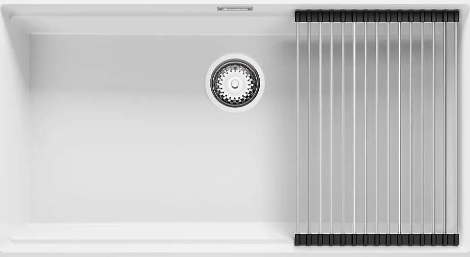 - ✅ Le kit comprend – Évier Prague 90 Level, kit complet de vidange (siphon haute qualité, trop-plein, raccordement supplémentaire pour lave-linge ou lave-vaisselle), égouttoir enroulable.