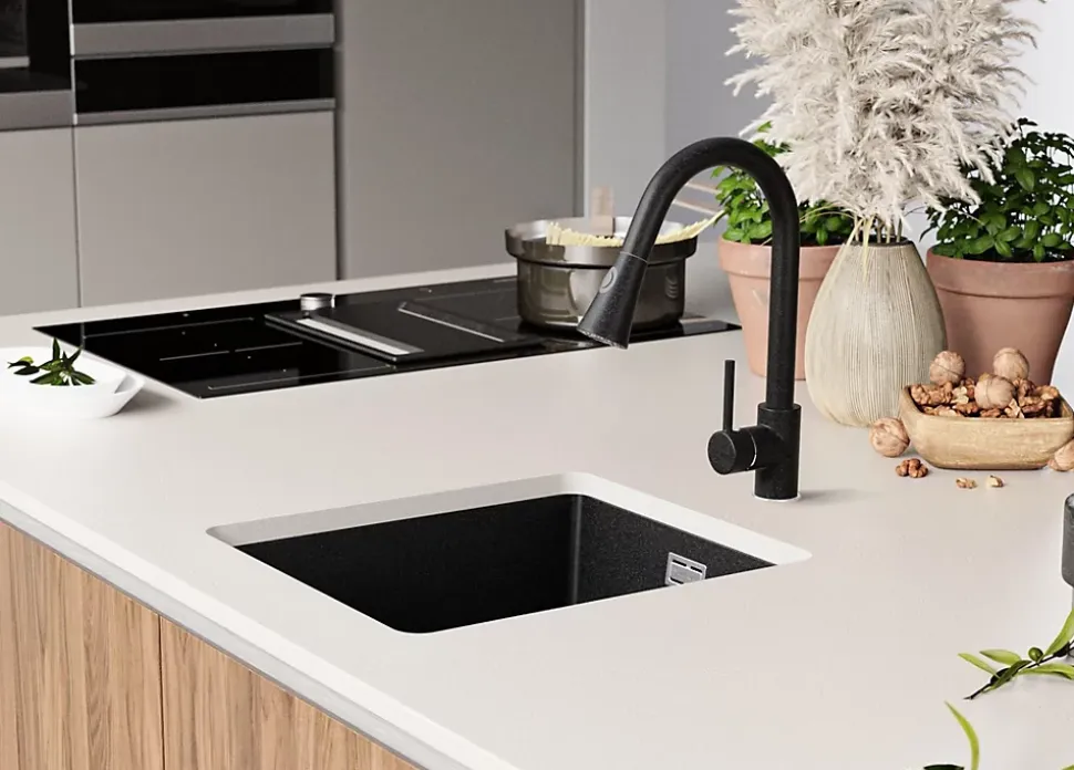 PRIMAGRAN Evier Sous Plan Graphite 41x47cm, Evier en Granit 1 bac + Kit de Vidage, Évier au meuble 45cm – London