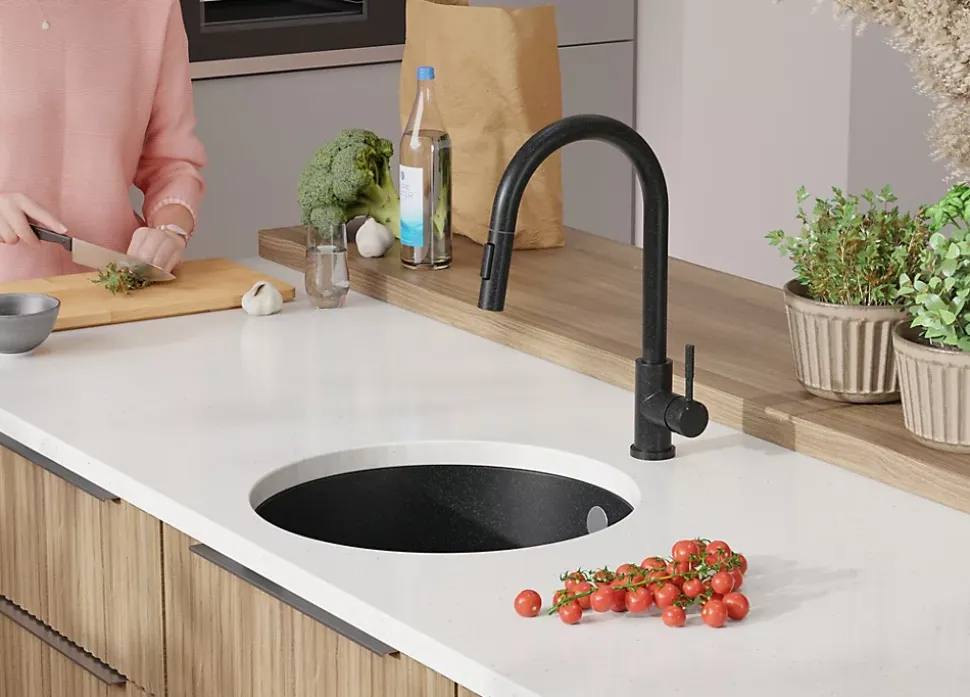 PRIMAGRAN Evier Sous Plan Graphite 46x46cm, Evier en Granit 1 bac + Kit de Vidage, Évier au meuble 50cm – La Valette