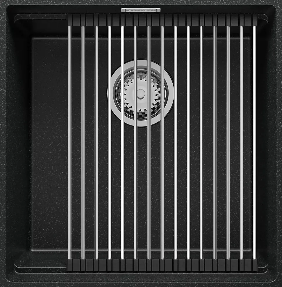 PRIMAGRAN Evier Sous Plan Graphite 46x47cm, Evier en Granit 1 bac + Kit de Vidage + Accessoires, Évier au meuble 50cm – Prague