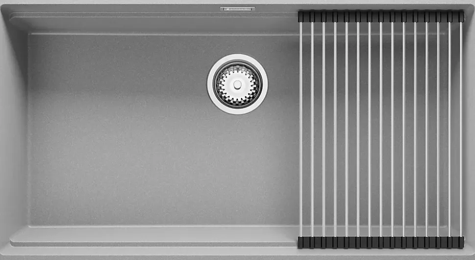 PRIMAGRAN Evier Sous Plan Gris 86x47cm, Evier en Granit 1 bac + Kit de Vidage + Accessoires, Évier au meuble 90cm – Prague