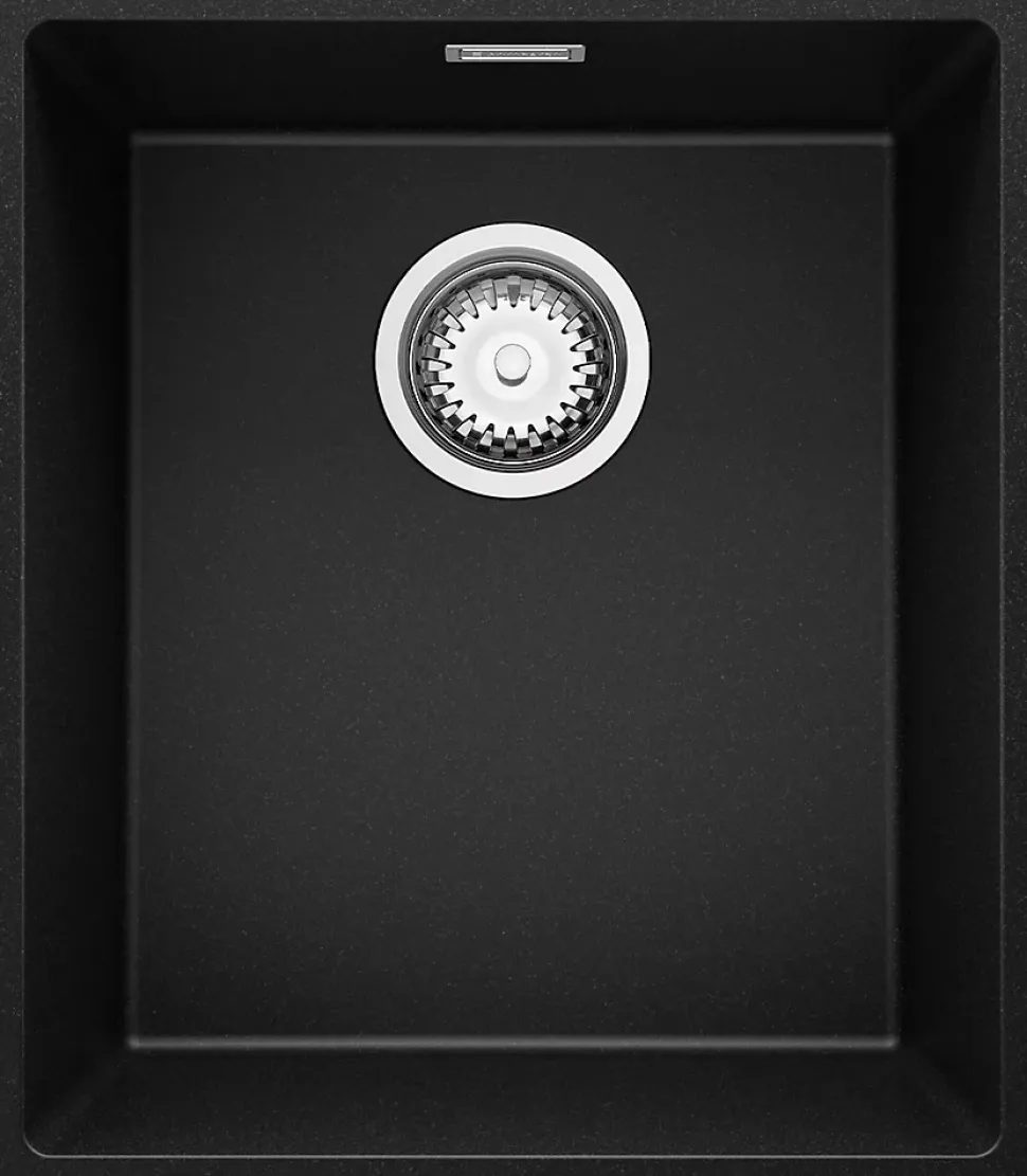 PRIMAGRAN Evier Sous Plan Noir 41x47cm, Evier en Granit 1 bac + Kit de Vidage, Évier au meuble 45cm – London