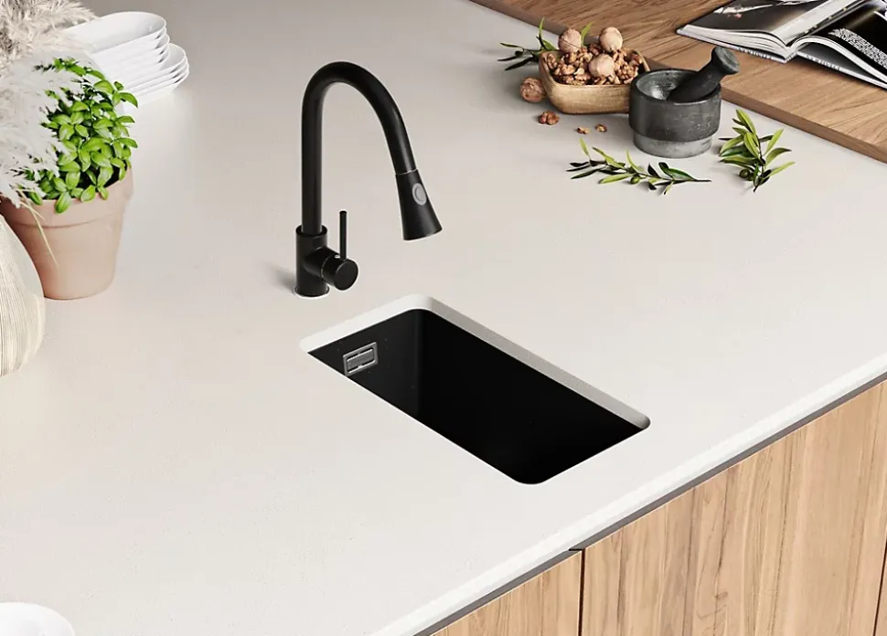 - ✅ ÉLÉGANT, évier en granit de haute qualité, avec un bac sans égouttoir, s’adapte parfaitement à des sous-meubles supérieurs à 30 cm, Dimensions extérieures: 260 x 470 mm, Profondeur du bac principale: 200 mm et robinet de cuisine avec bec pivotant à 260 degré, s’adapte dans un trou de montage de 35 mm (standard du marché)